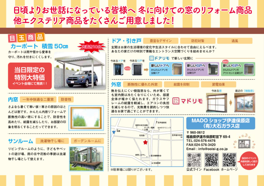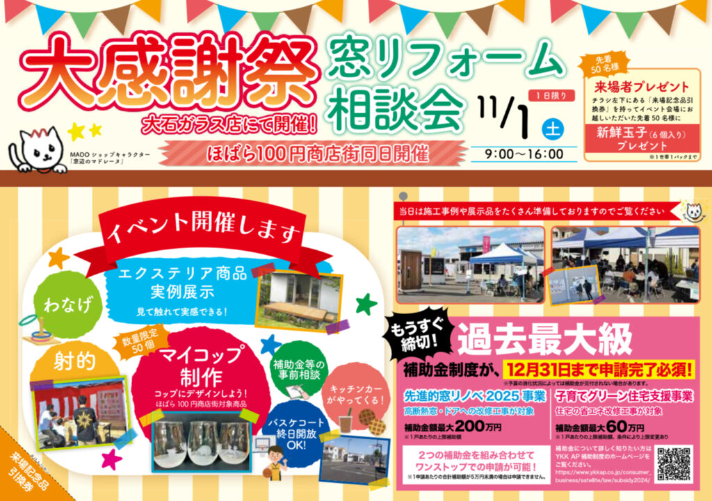 日頃の感謝の気持ちを込めて『窓リフォーム相談会』と『ほばら100円商店街』を同日開催します!